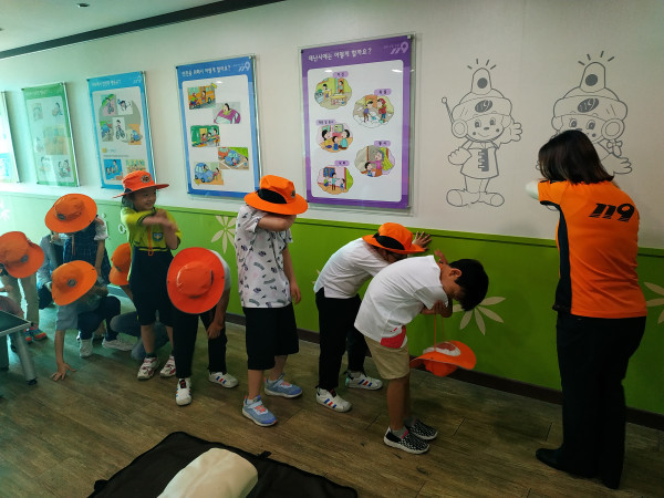 인천 남동소방서는 최근 화재 등 각종 재난 발생시 어린이들의 대처능력 향상과 안전의식 고취를 위해 동부초등학교 119소년단을 대상으로 ‘119소방안전 체험교실’을 운영했다. 사진은 어린이들이 화재 대피 훈련을 하고 있는 모습. (사진제공=남동소방서)