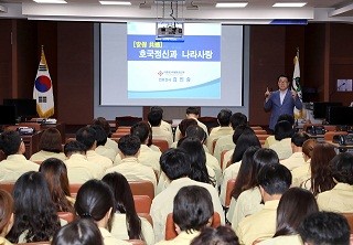 이날 교육에서는 대한민국재향군인회 김인술 안보교수를 초빙해 ‘안보공감 호국정신과 나라사랑’이라는 주제로 한반도의 현재 상황, 급변하는 안보정세 등에 대해 강의를 진행했다.