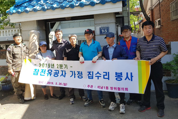 인천 서구 석남1동 방위협의회는 최근 주거환경이 열악한 참전유공자 1가구에 대해 집수리 봉사활동을 실시했다. 이날 위원들은 도배 및 장판 교체, 주변 환경 정비 등을 해 쾌적한 주거환경을 조성했다. 사진은 기념촬영을 하는 모습. (사진제공=인천 서구청)