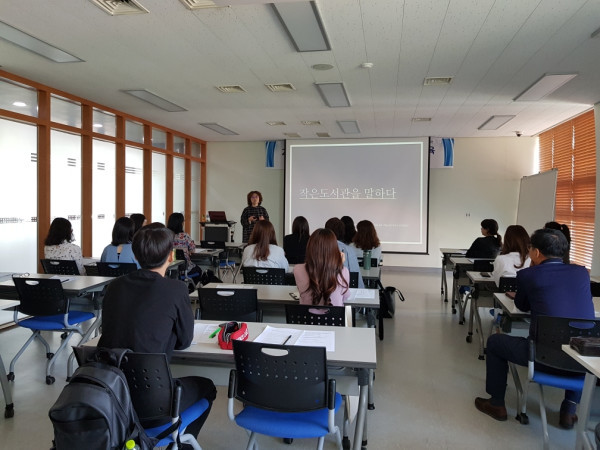 경기 포천시는 최근 중앙도서관에서 18곳 공·사립작은도서관 운영자를 대상으로 한 직무교육 프로그램 '도서관학교'를 개강하고 작은도서관의 역사와 현황, 장서 개발, 문화 프로그램 등의 운영 실무에 대한 교육을 실시했다. 사진은 교육 진행 모습. (사진제공=포천시청)