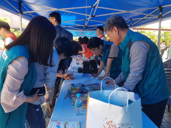 경기 하남시 지역사회보장협의체는 최근 하남문화예술관 아랑홀 앞에서 13개동 사회보장협의체 위원 등 약 120여명이 참여한 가운데 ‘복지사각지대 발굴 및 기부문화 활성화’를 위한 홍보캠페인을 전개했다. 사진은 주민에게 홍보를 하는 모습. (사진제공=하남시청)