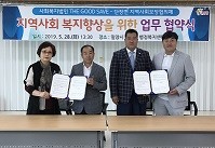 | ▲ 단장면 지사협과 더굿세이브 간에 업무협약서를 작성하고 기념촬영을 하고 있다. | ||