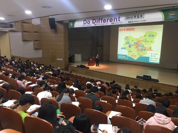 | ▲ 창원대서 박일호 밀양시장, 인생후배 위한 ‘Do Different!’ 특강 | ||