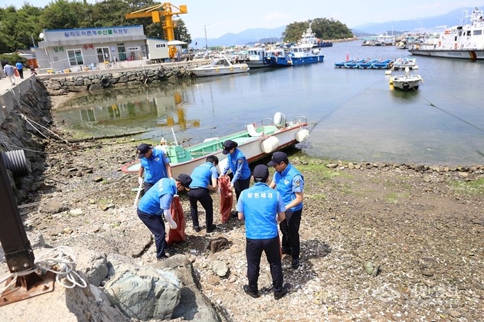 특히, 이번 봉사활동에는 수중 잠수가 가능한 해양경찰 구조대와 해양구조협회 마산지부 잠수요원들이 제24회 바다의 날을 기념해 섬 주변 연안 수중 정화활동을 전개해 수중 쓰레기 등 약 3톤을 수거했다.