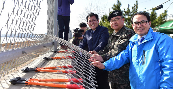 시는 박남춘 시장과 시민 등 100여명이 참석한 가운데 남동공단 해안도로에서 '철책 철거 착공식'을 개최했다.