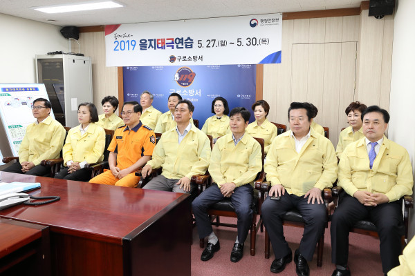 [시민일보=이대우 기자] 최근 서울 구로구의회(의장 박칠성)가 ‘2019년 을지태극연습’이 진행 중인 구청 종합상황실 및 구로소방서를 방문해 연습상황을 참관하고 관계자들을 격려했다.