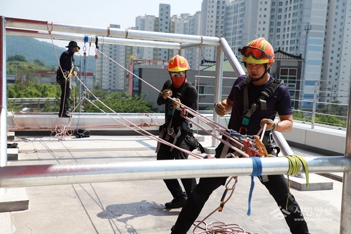 | ▲ 창원소방본부 한낮 더위에도 전국 소방기술경연대회 구조팀전술분야 맹훈련 | ||