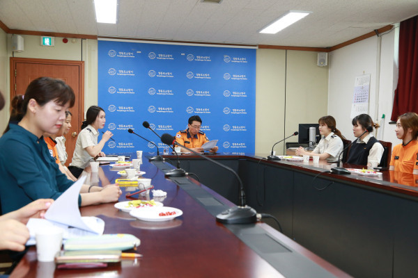 영등포소방서는 지난 5일 오전 3층 소회의실에서 여성 소방공무원의 고충 상담과 소통을 위한 간담회를 실시했다. 사진은 서순탁 서장 및 참여자들이 이야기를 나누고 있는 모습. (사진제공=영등포소방서)