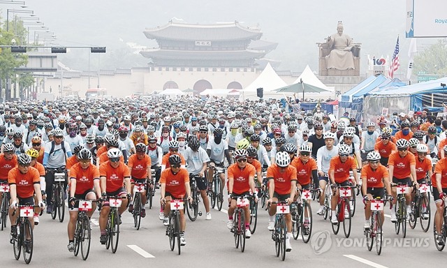 9일 오전 서울 광화문 광장에서 열린 ‘2019 서울자전거대행진’에서 참가자들이 힘찬 출발을 하고 있다.