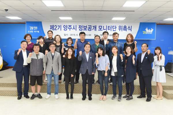 경기 양주시는 최근 시청 대회의실에서 ‘제2기 양주시 정보공개 모니터단’ 위촉식을 개최했다. 이날 위촉식은 지역·성별·연령을 고려해 선발한 22명에게 위촉장을 수여하고 모니터단의 역할과 활동방법 등을 공유했다. 사진은 관계자들의 기념촬영 모습. (사진제공=양주시청)