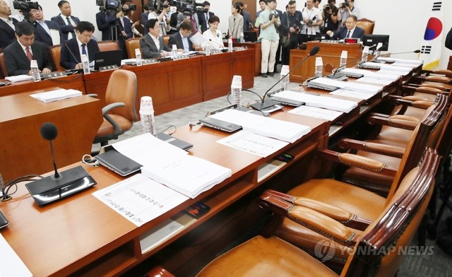 10일 국회에서 제12차 사법개혁 특별위원회 전체회의가 열리고 있다. 자유한국당은 “일방적 회의 강행”이라며 불참했다.