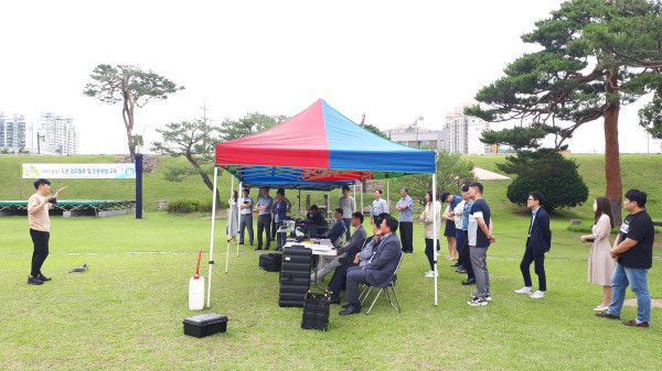 충남 홍성군이 10일 드론에 관심이 있거나 업무 활용이 필요한 직원을 대상으로 군청 대강당 및 여하정에서 '드론 업무활용 및 운용방법 교육'을 실시했다. 이날 교육은 전문강사가 이론·작동법·실습교육 등을 진행했다. 사진은 교육 진행 모습. (사진제공=홍성군청)