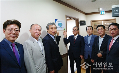 | ▲ 좌측으로부터 손석호 원장, 손상철 회장, 김종식 소장, 도승희 회장, 김중식 사무총장, 유완석 원장, 정충기 국제언론인클럽 사무총장ㆍ사진 kpisl 제공 | ||