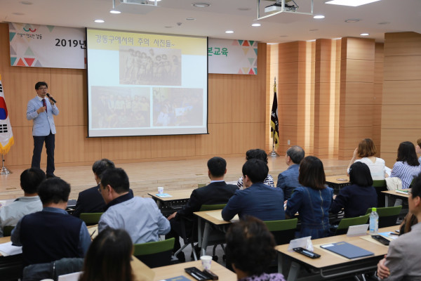 강동구와 한국체육산업개발은 10일 구청장 집무실에서 생활체육 활성화를 위한 업무협약을 체결하며 공동 사업 추진 협력 체계를 구축하기로 합의했다. 사진은 이정훈 구청장(왼쪽에서 네 번째)과 관계자들이 기념촬영을 하는 모습. (사진제공=강동구청)