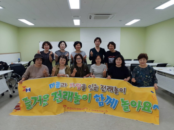 11일 경기 부천시 오정동에 위치한 노동복지회관에서 다문화가구 여성들을 대상으로 한 전래놀이 체험행사가 개최됐다. 이날 전래놀이봉사단이 행사 참여자들에게 전통놀이 등을 알려줬다. 사진은 전래놀이봉사단이 기념촬영을 하는 모습. (사진제공=부천시청)