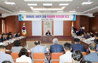 이날 보고회는 군수지시사항 처리상황을 비롯한 6대 분야 76개 사업의 군수공약사항 현황, 부서별 주요업무 추진상황 및 추진성과 등에 대해 부서장 보고 위주로 진행됐다.