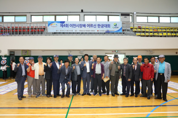 경기 이천시는 최근 서희청소년문화센터 체육관에서 ‘제4회 이천시장배 한궁대회’를 개최했다. 이번 대회의 단체전 우승은 마장면분회, 개인전 우승은 중리동분회 홍규식 선수가 차지했다. 사진은 엄태준 시장과 대회 참석자들이 기념촬영을 하는 모습. (사진제공=이천시청)