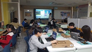 첨단미래교실에서는 피지컬 코딩 로봇을 활용한 아두이노 보드 코딩 체험 프로그램을 운영한다.