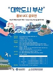 시는 대학생 등 모든 시민이 참여할 수 있는 ‘대학도시 부산 홍보 UCC 공모전’을 통해 부산에 대한 매력을 홍보하고 시-대학 상생발전도 강조할 계획이다. 참가 자격에 제한은 없고, 팀당 3인 이내 1개 작품으로, 영상길이는 30초 이상 3분 이하이며, 제작 필수조건으로 부산지역 대학 3개 이상 노출, 부산 촬영을 필수로 했다.