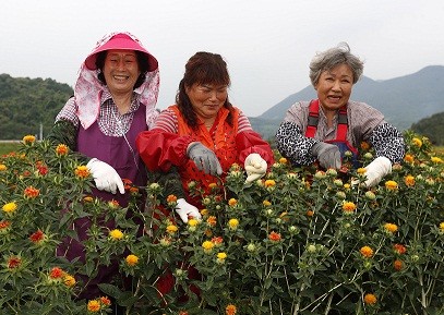 한편 홍화꽃 수확은 7월까지 이어지며 8월 말께는 본격적인 홍화씨 수확이 시작된다.