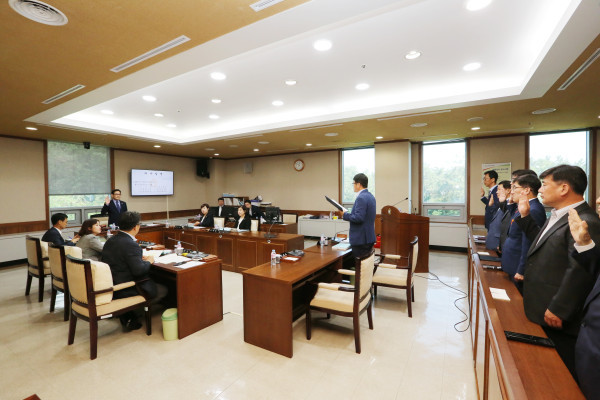 경기 의정부시의회 도시건설위원회는 최근 제290회 제1차 정례회 의사일정으로 '2019년 행정사무감사'를 실시했다. 이날 2035년 도시기본계획 수립해 상하수도관 관리 등에 대한 질의를 했다. 사진은 행정사무감사가 진행되고 있는 모습. (사진제공=의정부시의회)