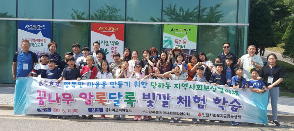 인천 서구 당하동 지역사회보장협의체는 최근 강화도 아르미애월드에서 지역내 초등학생 23명이 참가한 가운데 체험학습을 실시했다. 이날 천연비누 만들기, 닥종이 인형 만들기 등의 체험이 진행됐다. 사진은 참가 학생들이 기념촬영을 하는 모습. (사진제공=서구청)