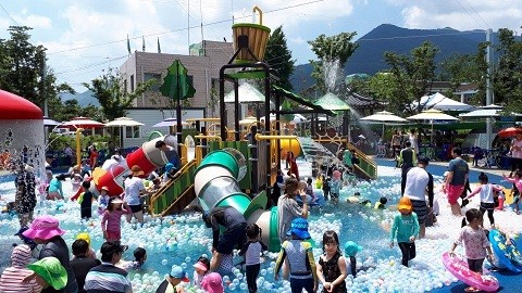 | ▲ 밀양숲속마을 야외 어린이 물놀이장 | ||