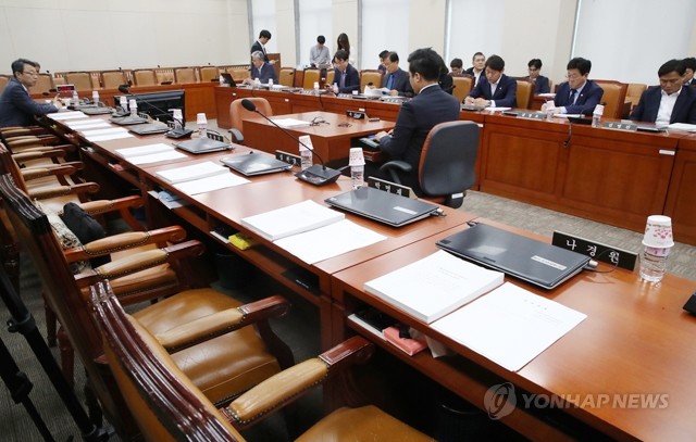 19일 국회에서 열린 기획재정위원회 전체회의에 자유한국당 나경원 원내대표가 불참, 좌석이 비어 있다.