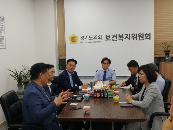 [수원=채종수 기자] 경기도의회 보건복지위원장 정희시 의원(더불어민주당·군포2)은 19일 보건복지위원회 의원실에서 도내 사회복지연대 관계자 6명과 간담회를 개최했다.