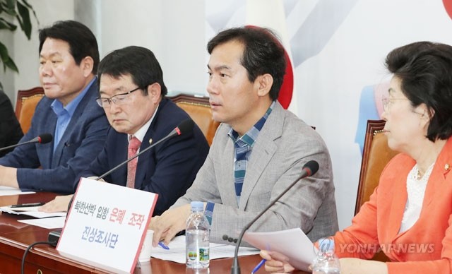 23일 오후 국회에서 열린 자유한국당 ‘북한선박 입항 은폐조작 진상조사단’ 회의에서 조사단장인 김영우 의원이 발언하고 있다.