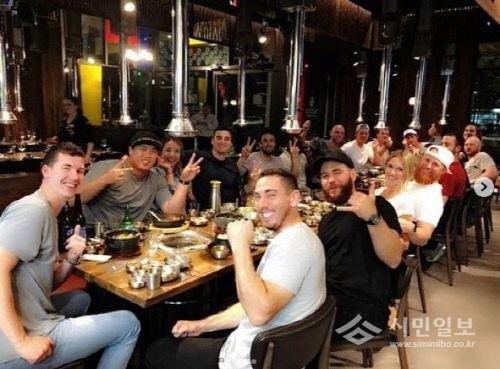 류현진은 25일(한국시간) 자신의 인스타그램에 다저스 동료들과 한식당에서 바베큐 파티를 하고 있는 사진들을 게재했다. 사진 속에는 워커 뷸러, 러셀 마틴, 저스틴 터너, 오스틴 반스, 로스 스트리플링, 스캇 알렉산더, 맷 비티, 카일 갈릭 등이 환한 미소를 짓고 있다.