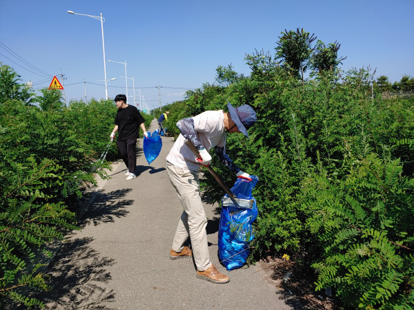 경기 김포시 대곶면 행정복지센터는 24일 평소 낚시꾼들이 버리고간 쓰레기 등으로 몸살을 앓고 있는 곳인 대벽수로 주변 대청소를 실시했다. 이날 수거한 쓰레기양은 50리터 종량제봉투 40장에 달했다. 사진은 청소를 하는 모습. (사진제공=김포시청)
