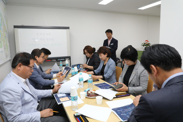 | ▲ 행정재무위원회가 구정연구단에 방문해 의견을 나누고 있다. (사진제공=강서구의회) | ||