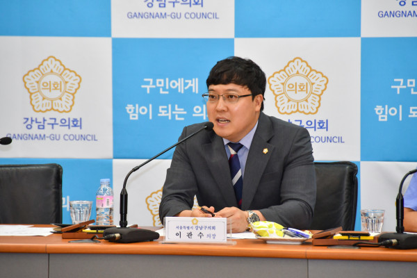 | ▲ 27일 이관수 의장이 한국여성지도자연합 강남지부 회원들과의 간담회에서 인사말을 하고 있다. (사진제공=강남구의회) | ||