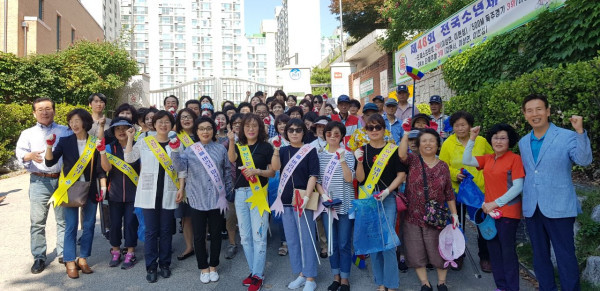 서울 송파구의회 박인섭 의원(자유한국당)과 김형대 의원(더불어민주당)이 최근 진행된 ‘가락2동 우리동네 깨끗한날’ 행사에 참여해 주민들과 함께 불법 전단지 및 학교주변 유해물질 제거 등 공원 주변을 청소했다. 사진은 청소 후 주민들과 기념촬영을 하고 있는 의원들의 모습. (사진제공=송파구의회)