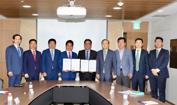 | ▲ '영암군-CY그룹' 업무협약 체결식에 참여한 전동평 군수가 관계자들과 기념촬영을 하고 있다. (사진제공=영암군청) | ||