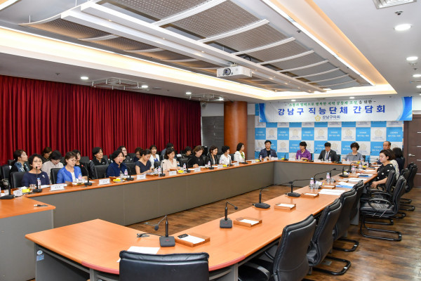 [시민일보=이대우 기자] 서울 강남구의회(의장 이관수)가 6층 열린회의실에서 강남구 구립어린이집연합회 임원·회원들과 간담회를 열고, 보육사업의 질적 성장을 위한 방안에 대해 심도있는 의견을 나눴다.