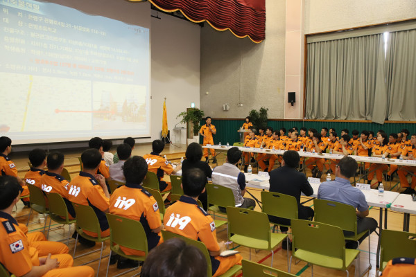 서울 은평소방서는 최근 본서 4층 대강당에서 소방서장 및 주요 간부, 유관기관, 당일 현장 출동대원, 시민 등 100여명이 참석한 가운데 최근 발생한 은명초등학교 화재에 대한 소방활동 검토회의를 했다. 사진은 회의 진행 모습. (사진제공=은평소방서)