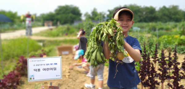 경기 하남시는 최근 시에서 지역내 체험농장에서 국·공립 어린이집 원아 600여명이 참여한 가운데 ‘감자 캐기 체험행사’를 개최했다. 이날 아이들은 직접 감자를 캐고 여러가지 텃밭 작물을 경험했다. 사진은 한 어린이가 감자를 캔 모습. (사진제공=하남시청)