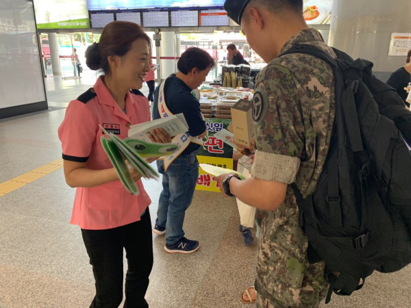 경기 수원시 권선구는 지난 4일 '안전점검의 날'을 맞아 수원버스터미널 일대에서 시민을 대상으로 안전 문화 정착을 위한 ‘7월 안전점검의 날 캠페인’을 실시했다. 사진은 캠페인에 참여한 관계자들이 홍보물을 배부하고 있는 모습.(사진제공=권선구청)