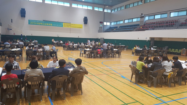 경기도이천교육지원청과 이천시는 9일 서희청소년문화센터에서 학생, 학부모, 교직원, 일반 시민 등 250여명이 참여한 가운데 '2019 이천혁신교육포럼'을 개최했다. 사진은 참여자들이 회의하는 모습. (사진제공=이천교육지원청)