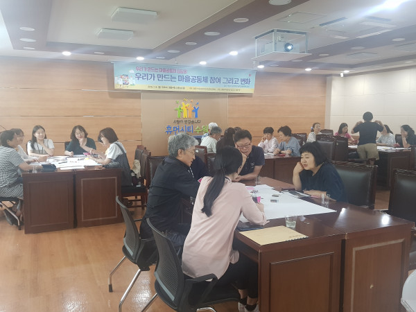 경기 수원시 영통구는 지난 8일 구청 상황실에서 ‘마을공동체 집담회’를 개최했다. 마을공동체 집담회는 영통구 각 동 마을만들기 협의회장들로 구성된 ‘영통구 마을공동체 네트워크 준비위원회’가 추진하는 ‘모이자 마을공동체’ 사업의 일환이다. 사진은 참여자들이 이야기를 나누는 모습. (사진제공=영통구청)