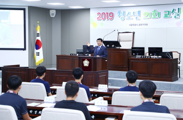 [시민일보=이대우 기자] 서울 송파구의회가 최근 4층 본회의장에서 보인중학교 2~3학년 학생 14명을 대상으로 청소년의회교실을 개최했다.