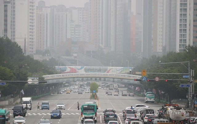 한일 ‘수출 규제’ 첫 실무접촉 후 갈등의 골 깊어지고 있는 가운데 15일 오전 초미세먼지 농도가 ‘나쁨’ 수준을 보인 경기도 수원시 영통구 봉영로 일대가 뿌옇다.
