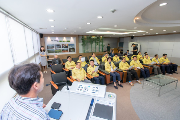 | ▲ 수도권매립지관리공사에 방문한 김병진 의장과 의원들이 관계자의 설명을 듣고 있다. (사진제공=강서구의회) | ||