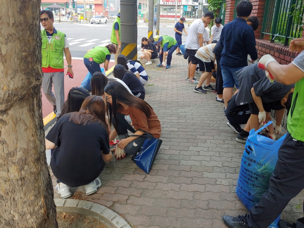 경기 의정부시 신곡2동은 최근 신곡2동 청소년지도위원회 주관으로 지역내 청소년 50여명과 함께 ‘아름다운 동네 만들기’ 프로젝트를 실시했다. 이날 청소년들은 길가의 잡초를 제거하고 쓰레기를 수거했다. 사진은 잡초를 제거하는 모습. (사진제공=의정부시청)