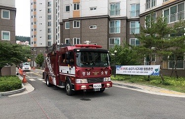 이날 훈련은 산청군과 산청소방서, 한국승강기 안전공단과 승강기 유지관리업체가 참여했다. 산청초등학교 학생들과 아파트 입주민, 지역주민 등 150여명도 참관했다.