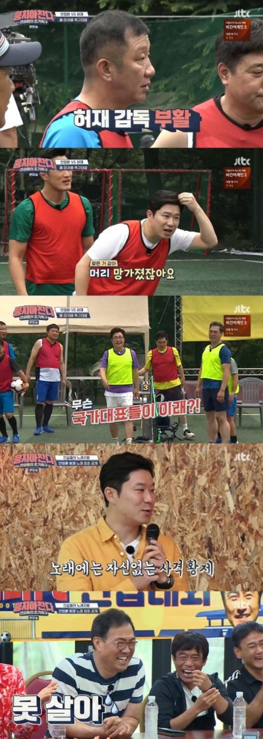 18일 방송된 JTBC '뭉쳐야 찬다‘에서는 단합대회를 간 멤버들이 안정환 팀과 허재 팀으로 나누어 족구경기 하는 모습이 방송을 탔다.
