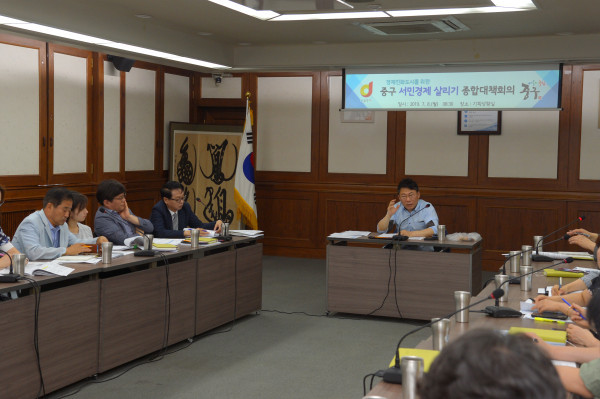 | ▲ ‘서민 경제 살리기 종합대책회의’에 참석한 서양호 구청장이 발언하고 있다. (사진제공=중구청) | ||