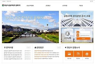 ‘공동주택 관리시스템’은 양산시가 전체 인구의 80퍼센트 이상이 거주하고 있는 아파트 등 공동주택단지 입주민과의 소통강화는 물론 공동주택 업무의 효율적 관리를 위해 경남도 내 자치단체 중 처음으로 도입했다.